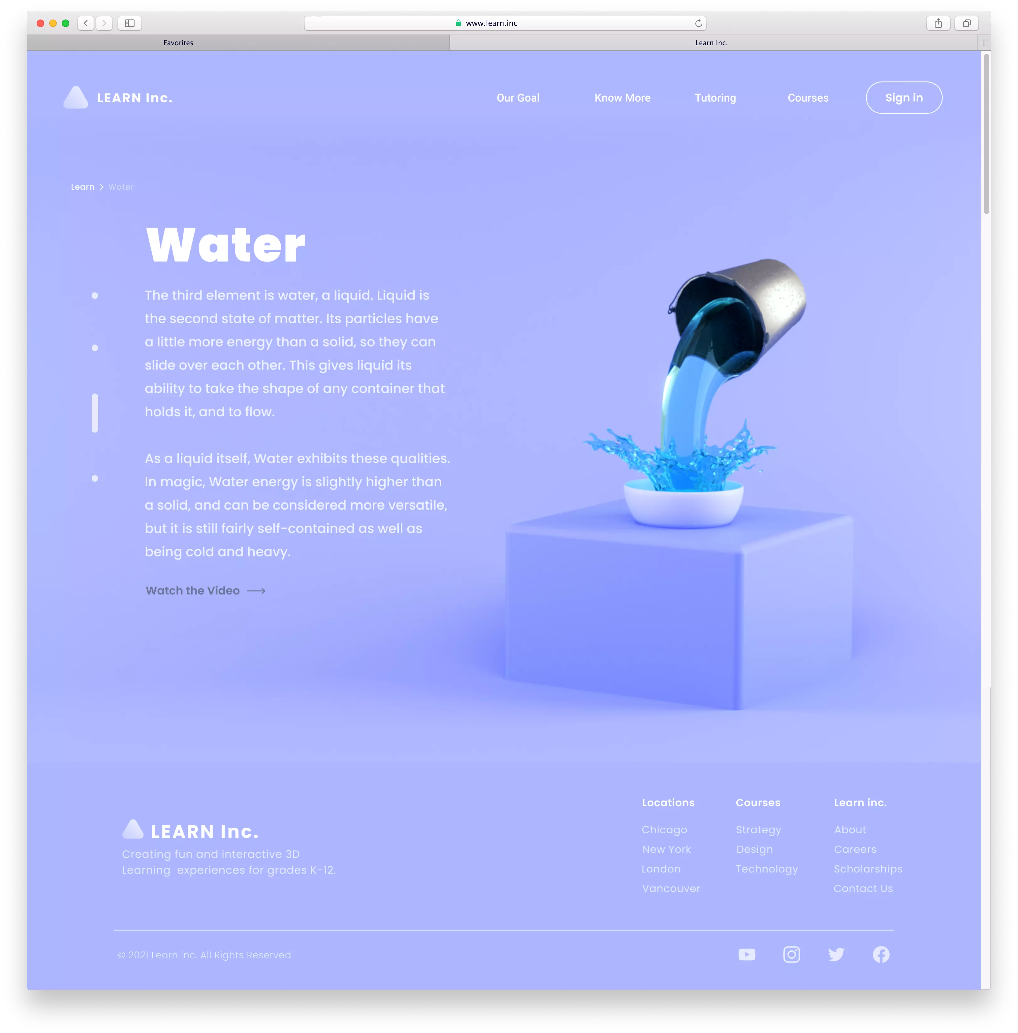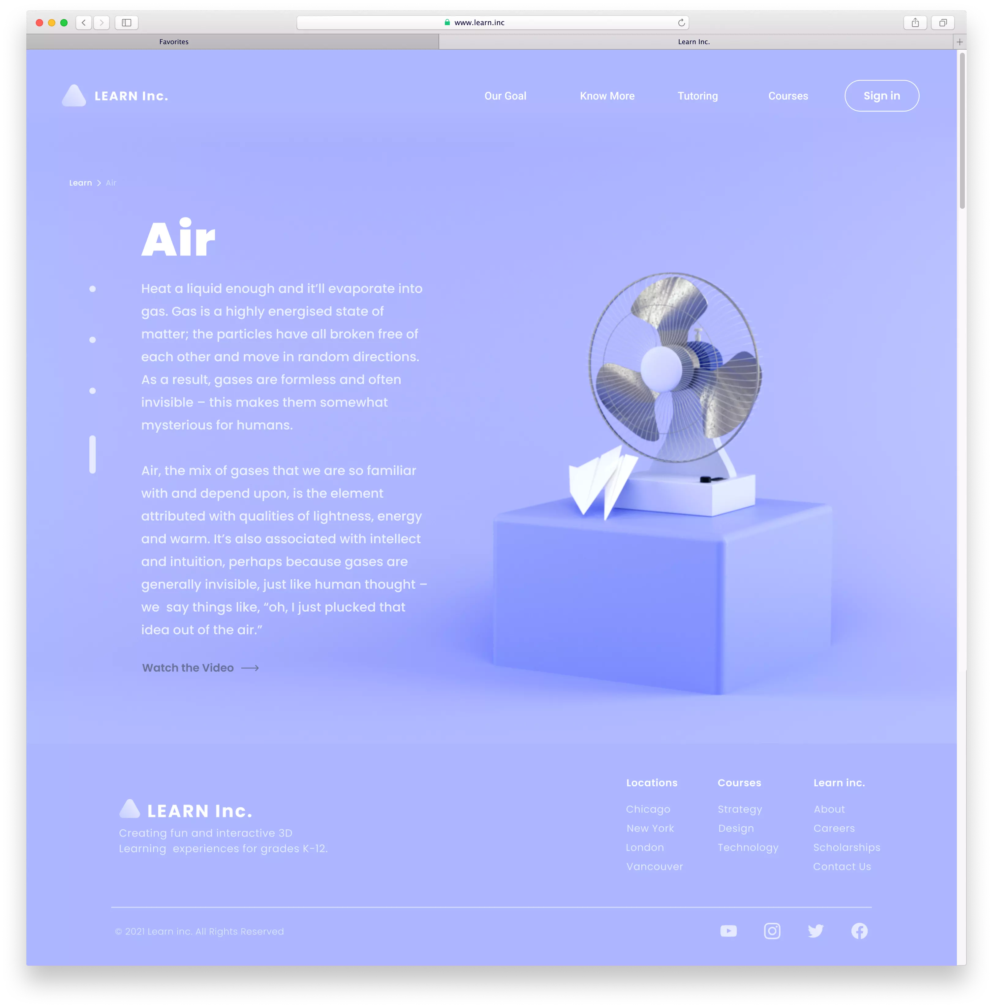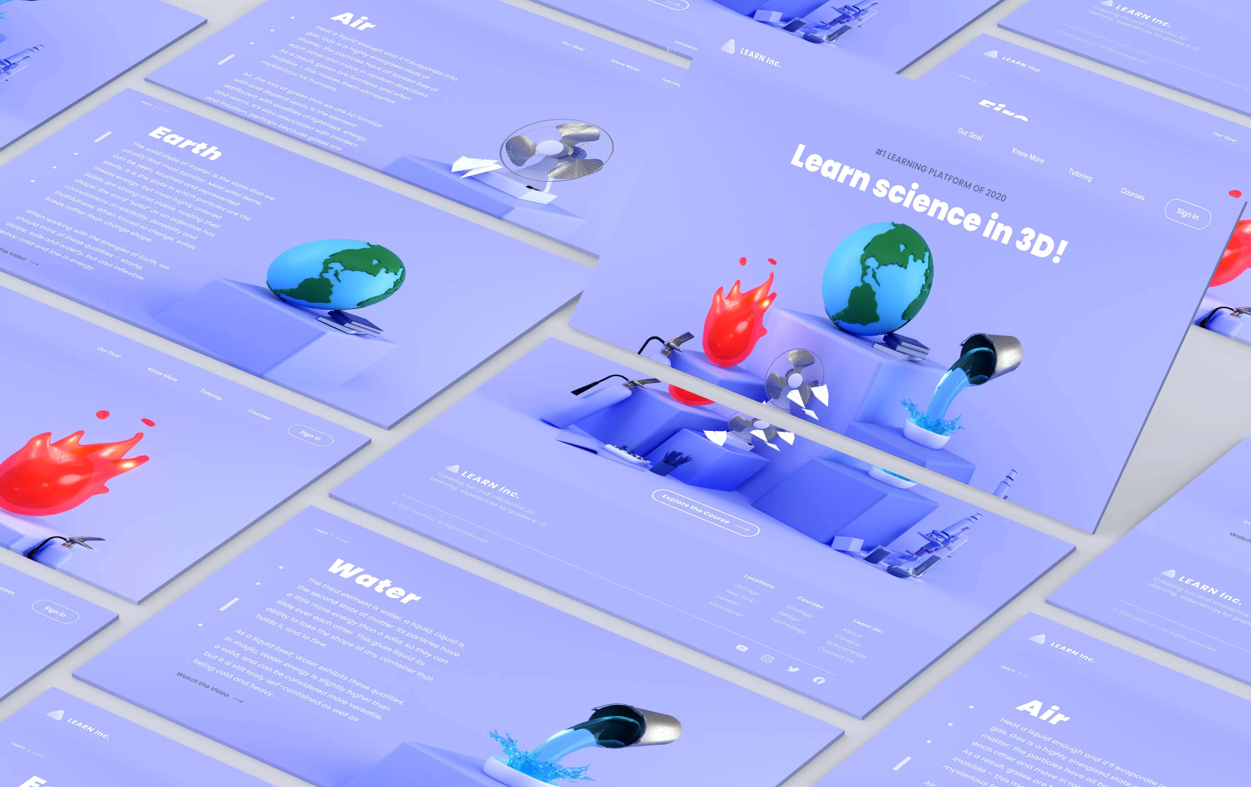For this assignment I created a 3-dimensional interactive science platform for kids. I wanted to create something that would mimic the in-person tactile experience of learning given the global climate of remote learning due to the pandemic. Using cinema4d I created a 3-dimensional scene for the homepage that features hover interactions and On-click function to explore each element further in their own scene/page.